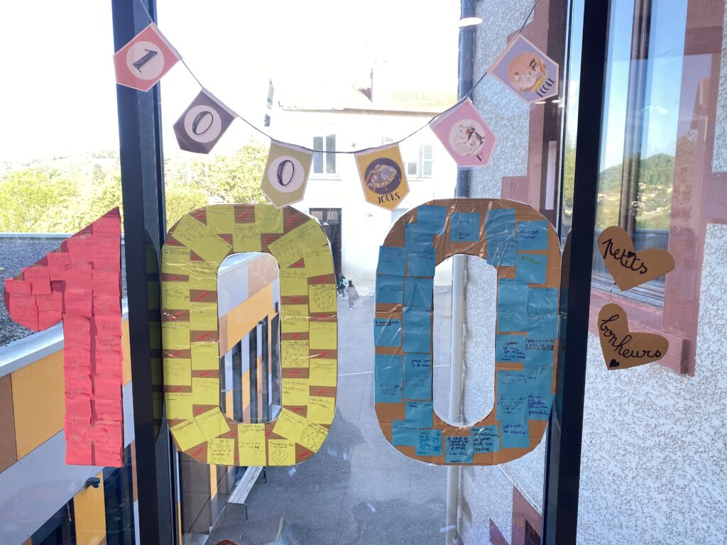 Aujourd’hui nous avons célébré le 100ème jour d’école. Nous avons écrit 100 petits bonheurs, nous avons fait 100 défis mathématiques, des activités sportives comme courir 100 secondes, marcher 100 pas, faire une pause rigolote pendant 100 secondes. Nous avons reçu en fin de journée un beau diplôme et nous avons fabriqué une couronne pour fêter ce jour avec nos familles et nos amis!
